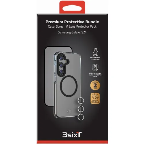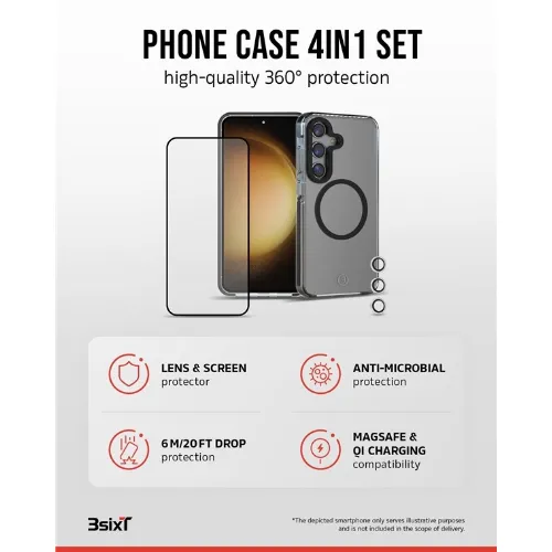 3SIXT 4in1 Protection Bundle mobilskal, skärmskydd, kameraskydd och stressfri applikator, kompatibel med Samsung Galaxy S24, transparent