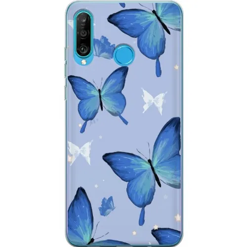 Mobilcover til Huawei P30 lite med Blå sommerfugle motiv