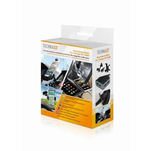 Technaxx bilholder til smartphones + biloplader med 4x USB-port (TE08)