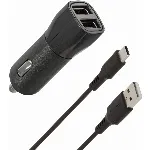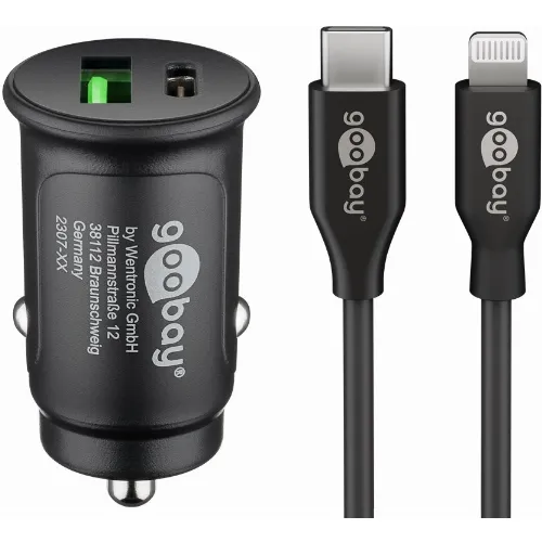 Goobay Dual USB snabbladdare för bil Lightning (27 W) laddningsadapter för bil med 1x USB-C™ och 1x USB-A, USB-C™ Lightning-kabel, 1 m, svart