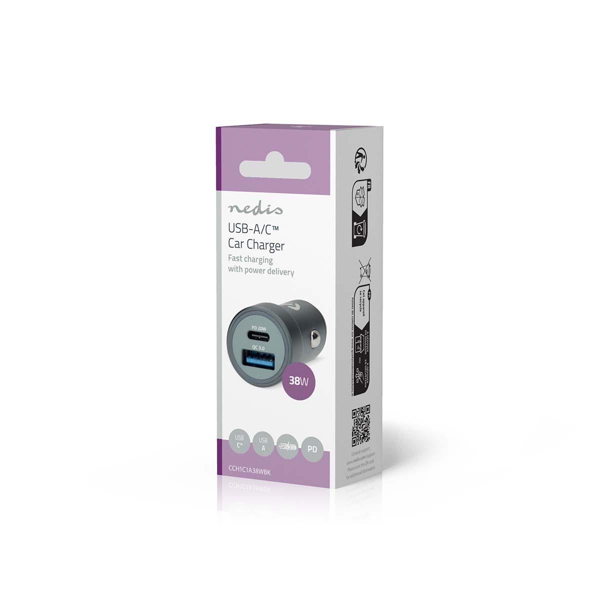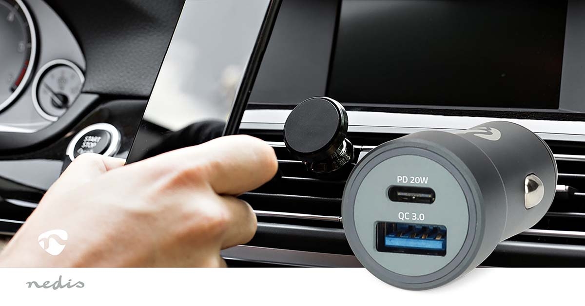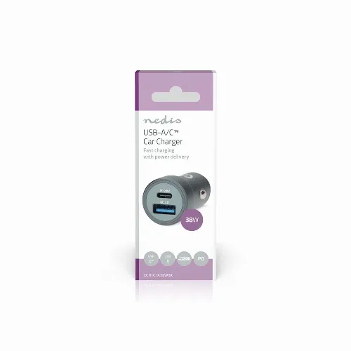 Nedis Biloplader | 38 W | 1.5 / 1.67 / 2.0 / 2.22 / 3.0 A | Antal output: 2 | Porttype: USB-A / USB-C™ | Automatisk Valgt Spænding