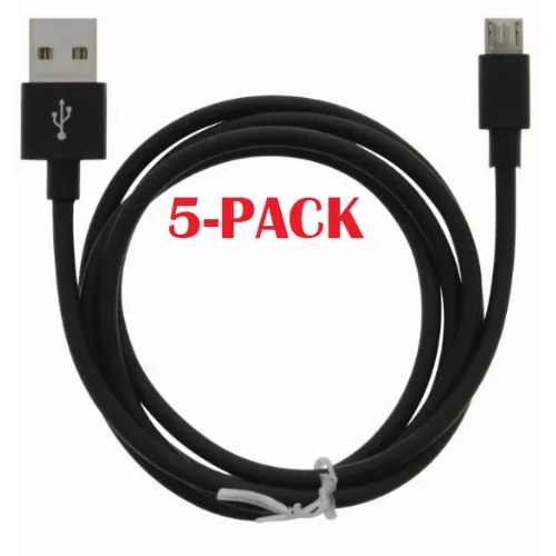 5-PACK Kabel USB-A - MicroUSB 2.4A, 1m, Sort