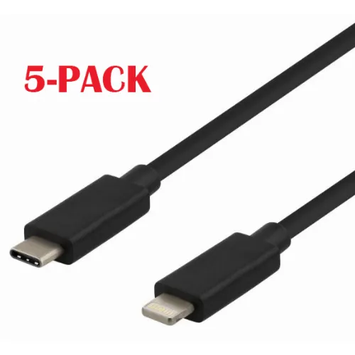 5-PACK Kabel USB-C - Lightning, 2,4A, 1m, Sort