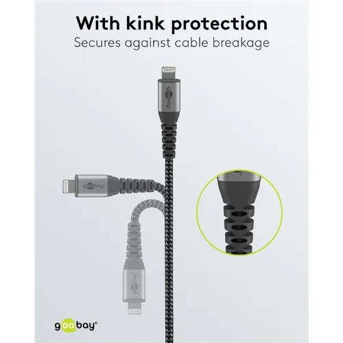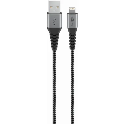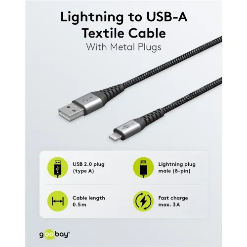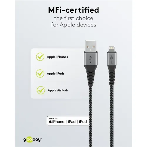 Goobay Lightning till USB-A-textilkabel med metallpluggar 0,5 m elegant och extra robust anslutningskabel för t.ex. Apple iPhone, iPad (Apple MFi certifierad)