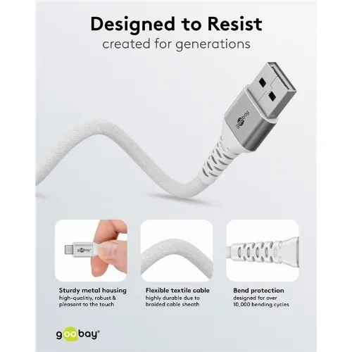 Goobay Lightning-USB-A supersoft textilkabel med metallkontakter, 0,5 m, vit MFi-certifierad, elegant och extra robust laddnings- och synkroniseringskabel för Apple iPhone/iPad (vit)