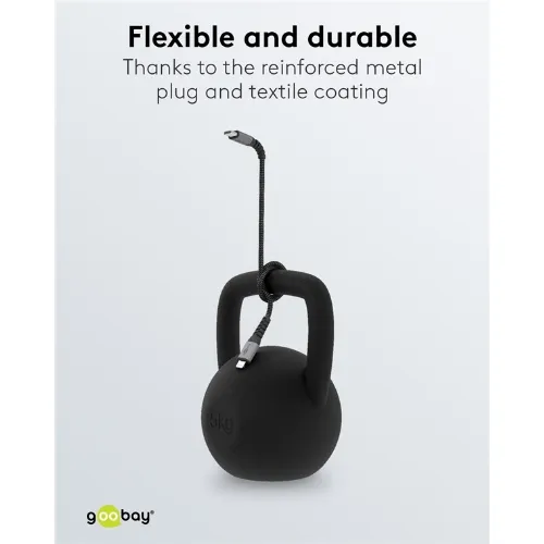 Goobay Lightning-USB-C™ textilkabel med metallkontakter, 2 m MFi-certifierad, elegant och extra robust laddnings- och synkroniseringskabel för Apple iPhone/iPad (svart, grå)