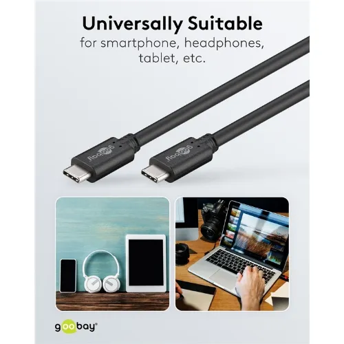 Goobay Sync & Charge SuperSpeed USB-C™-kabel (USB 3.2 Gen 1), USB-PD, 1,5 m USB-C™ plugg > USB-C™ plugg