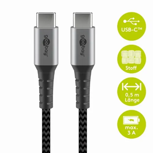 Goobay USB-C™-till-USB-C™-textilkabel med metallkontakter 0,5 m elegant och extra robust anslutningskabel för enheter med USB-C™-port
