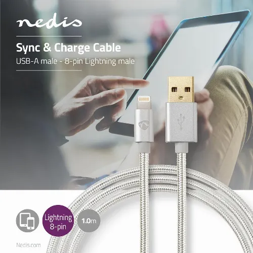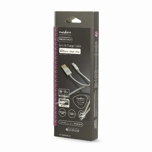 Nedis Lightning Kabel | USB 2.0 | Apple Lightning 8-pin | USB-A Han | 480 Mbps | Guldplateret | 1.00 m | Runde | Flettet / Nylon | Aluminium | Cover Window Box