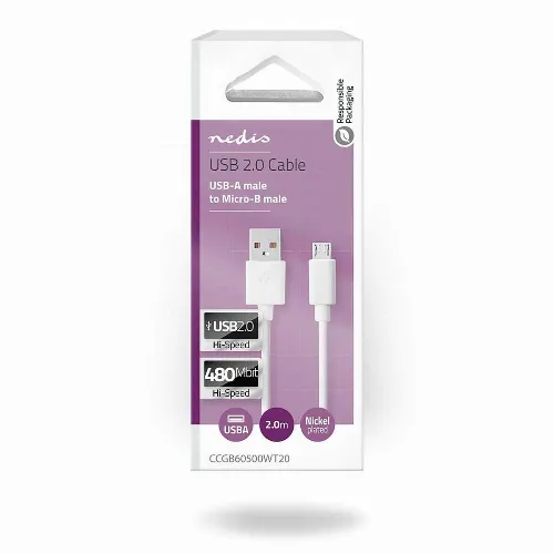 Nedis USB-kabel | USB 2.0 | USB-A Han | USB Micro-B han | 480 Mbps | Nikkelplateret | 2.00 m | Runde | PVC | Hvid | Box