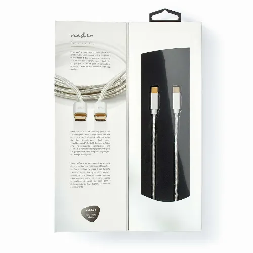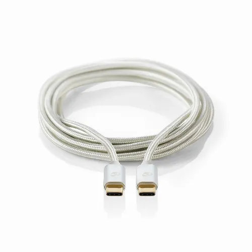 Nedis USB-kabel | USB 2.0 | USB-C™ Han | USB-C™ Han | 100 W | 480 Mbps | Guldplateret | 1.00 m | Runde | Flettet / Nylon | Sølv | Cover Window Box