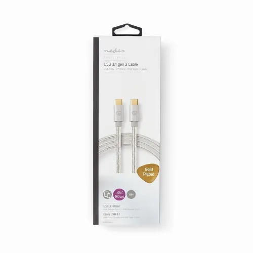 Nedis USB-kabel | USB 3.2 Gen 2 | USB-C™ Han | USB-C™ Han | 100 W | 4K@60Hz | 10 Gbps | Guldplateret | 1.00 m | Runde | Flettet / Nylon | Aluminium | Cover Window Box