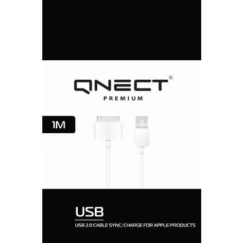 QNECT USB 2.0 type A han - 30-pin, 1 m, hvid