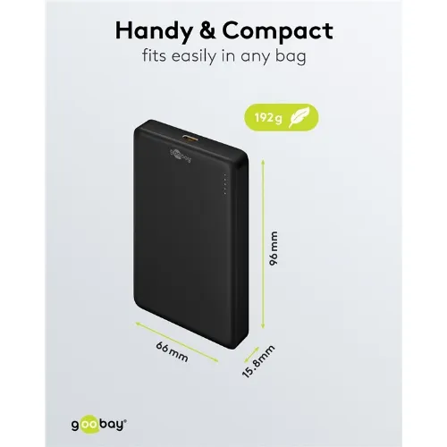 Goobay Magnetisk trådlös powerbank 10.000 mAh fäster magnetiskt på baksidan av mobiltelefonen, perfekt för samtidig laddning och telefonering