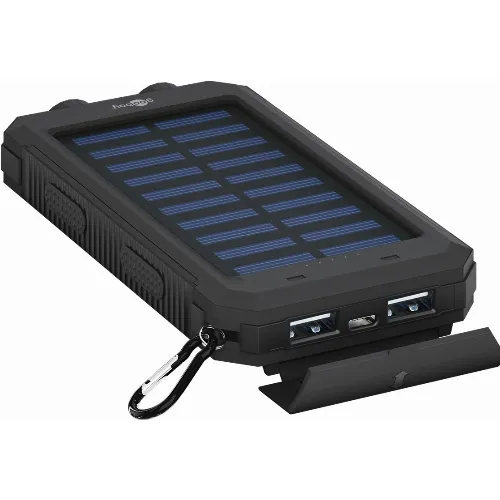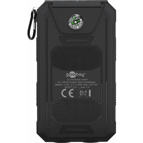 Goobay Outdoor-powerbank 8.0 (8.000 mAh) til udendørs eventyr med robust design, solcellepanel og lommelygtefunktion