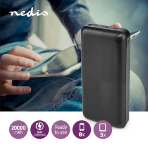 Nedis Powerbank | 20000 mAh | 1.5 / 2.0 / 3.0 A | Antal output: 2 | Output tilslutning: 1x USB-A / 1x USB-C™ | Input forbindels: 1x Micro USB / 1x USB-C™ | PD2.0 18W | Lithium-polymer