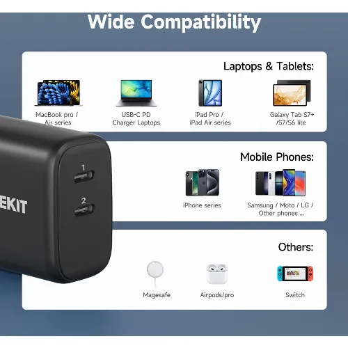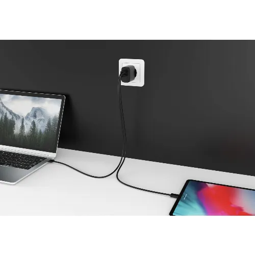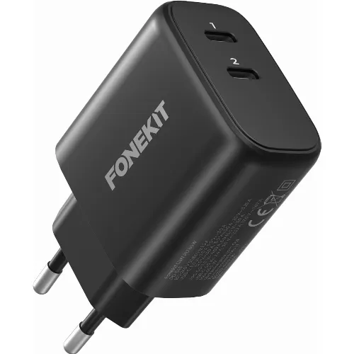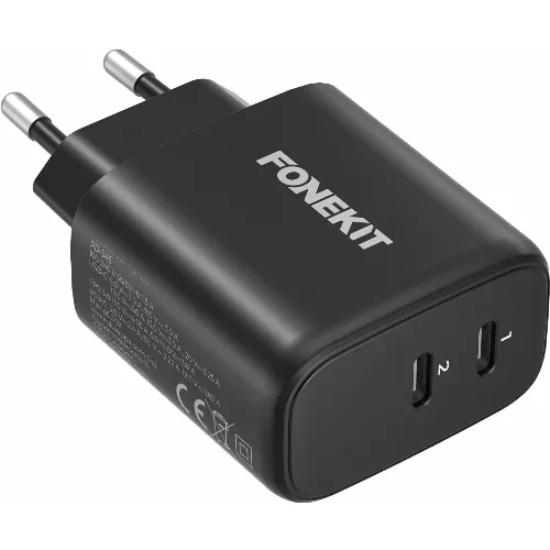 FoneKit GaN PD 65W AC-oplader, USB-C + USB-C, sort
