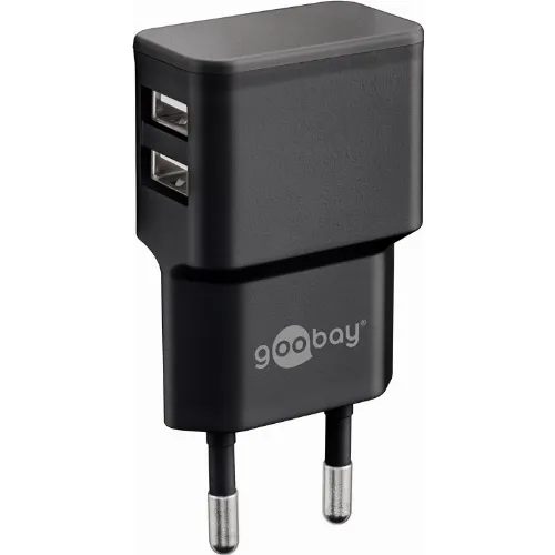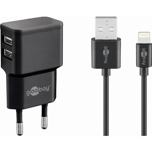 Goobay Apple Lightning Dual laddningssats (12 W) Strömförsörjningsenhet med 2x USB-uttag och Apple Lightning-kabel 1 m (svart)