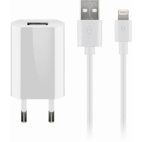 Goobay Apple Lightning laddningssats (5 W) Strömförsörjning med Apple Lightning-kabel 1 m (vit)