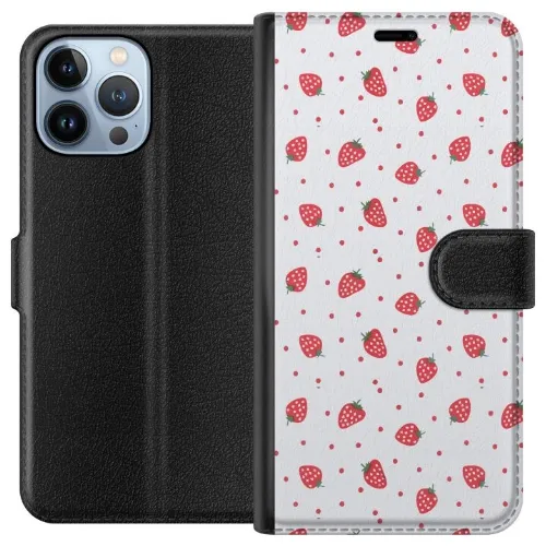 Tegnebogsetui til Apple iPhone 13 Pro Max med Jordbær motiv