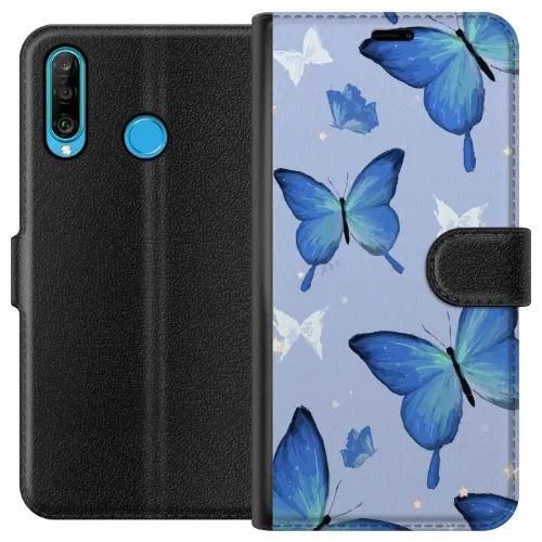 Tegnebogsetui til Huawei P30 lite med Blå sommerfugle motiv