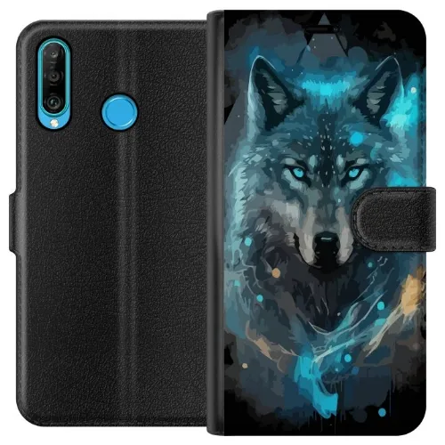 Tegnebogsetui til Huawei P30 lite med Ulve motiv