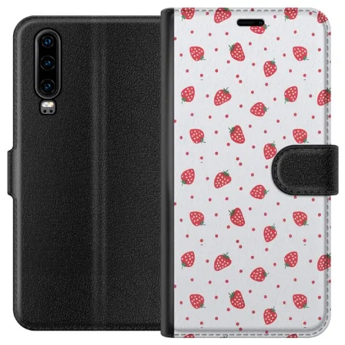 Tegnebogsetui til Huawei P30 med Jordbær motiv