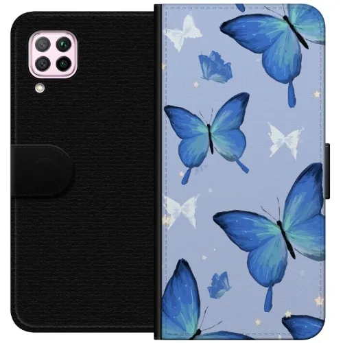 Tegnebogsetui til Huawei P40 lite med Blå sommerfugle motiv