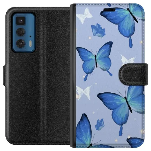 Tegnebogsetui til Motorola Edge 20 Pro med Blå sommerfugle motiv