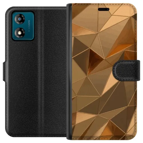 Tegnebogsetui til Motorola Moto E13 med 3D Guld motiv
