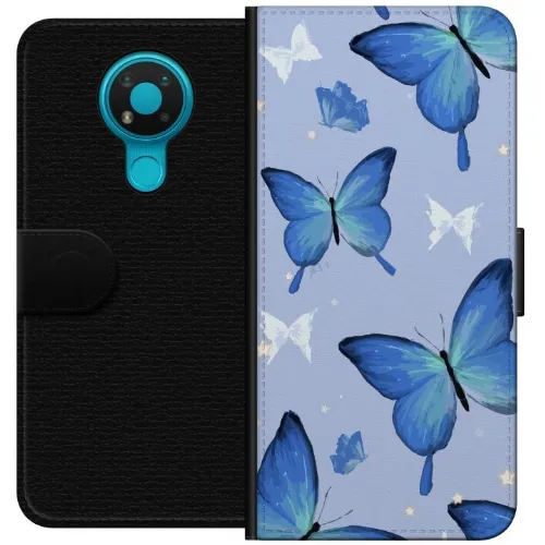 Tegnebogsetui til Nokia 3.4 med Blå sommerfugle motiv