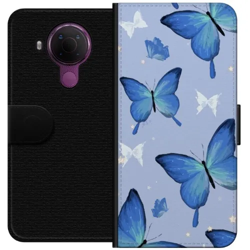 Tegnebogsetui til Nokia 5.4 med Blå sommerfugle motiv