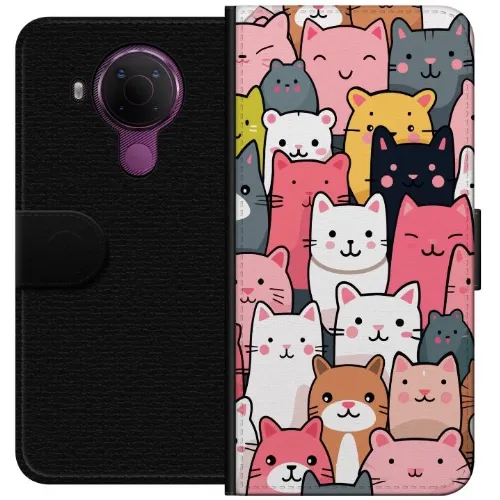 Tegnebogsetui til Nokia 5.4 med Katte mønster motiv