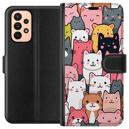 Tegnebogsetui til Samsung Galaxy A23 med Katte mønster motiv