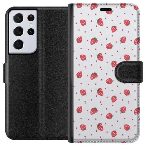 Tegnebogsetui til Samsung Galaxy S21 Ultra 5G med Jordbær motiv