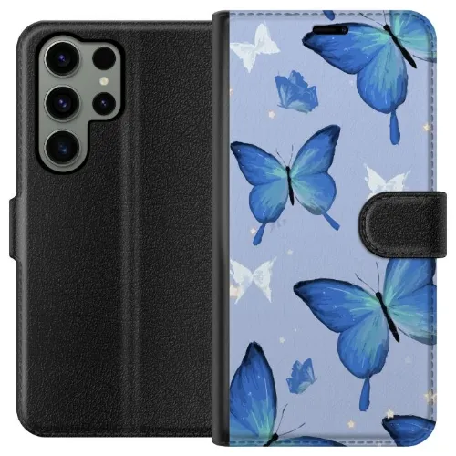 Tegnebogsetui til Samsung Galaxy S23 Ultra med Blå sommerfugle motiv