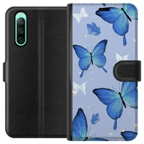 Tegnebogsetui til Sony Xperia 10 IV med Blå sommerfugle motiv