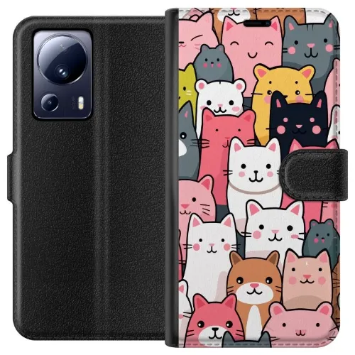 Tegnebogsetui til Xiaomi 13 Lite med Katte mønster motiv