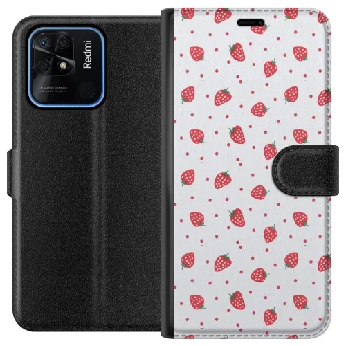Tegnebogsetui til Xiaomi Redmi 10C med Jordbær motiv