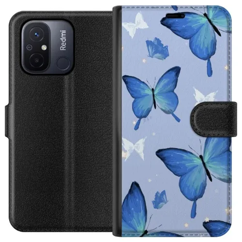 Tegnebogsetui til Xiaomi Redmi 12C med Blå sommerfugle motiv