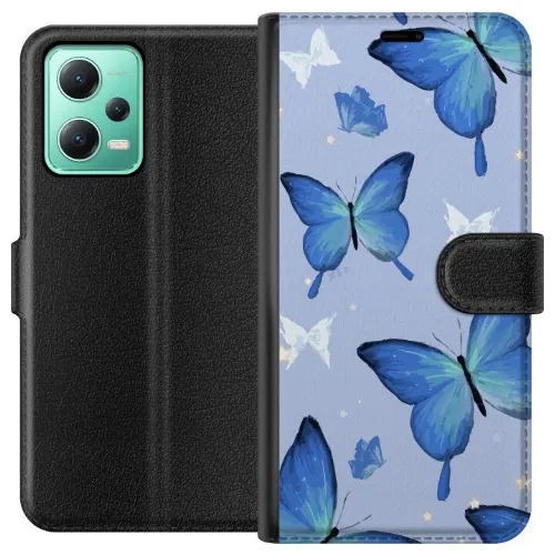 Tegnebogsetui til Xiaomi Redmi Note 12 med Blå sommerfugle motiv