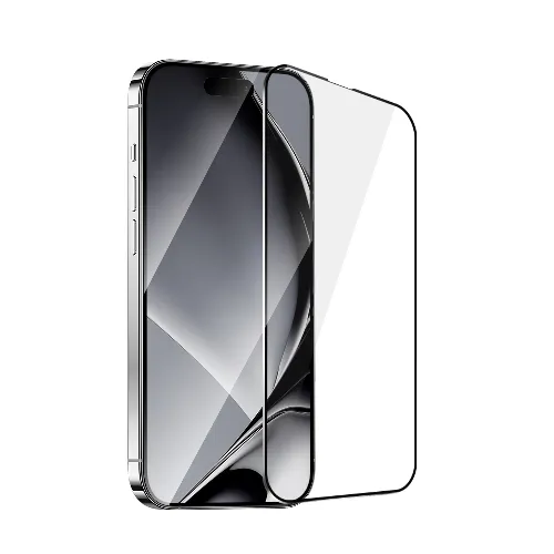 Skærmbeskytter af hærdet glas med metalramme, iPhone 16 Pro